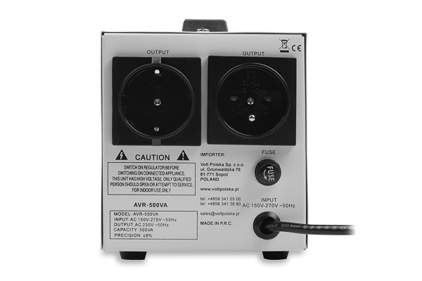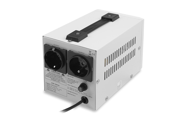 Stabilizator napięcia sieciowego AVR 500VA łączy w sobie cechy 2 urządzeń: regulatora napięcia i urządzenia przeciwprzepięciowego.